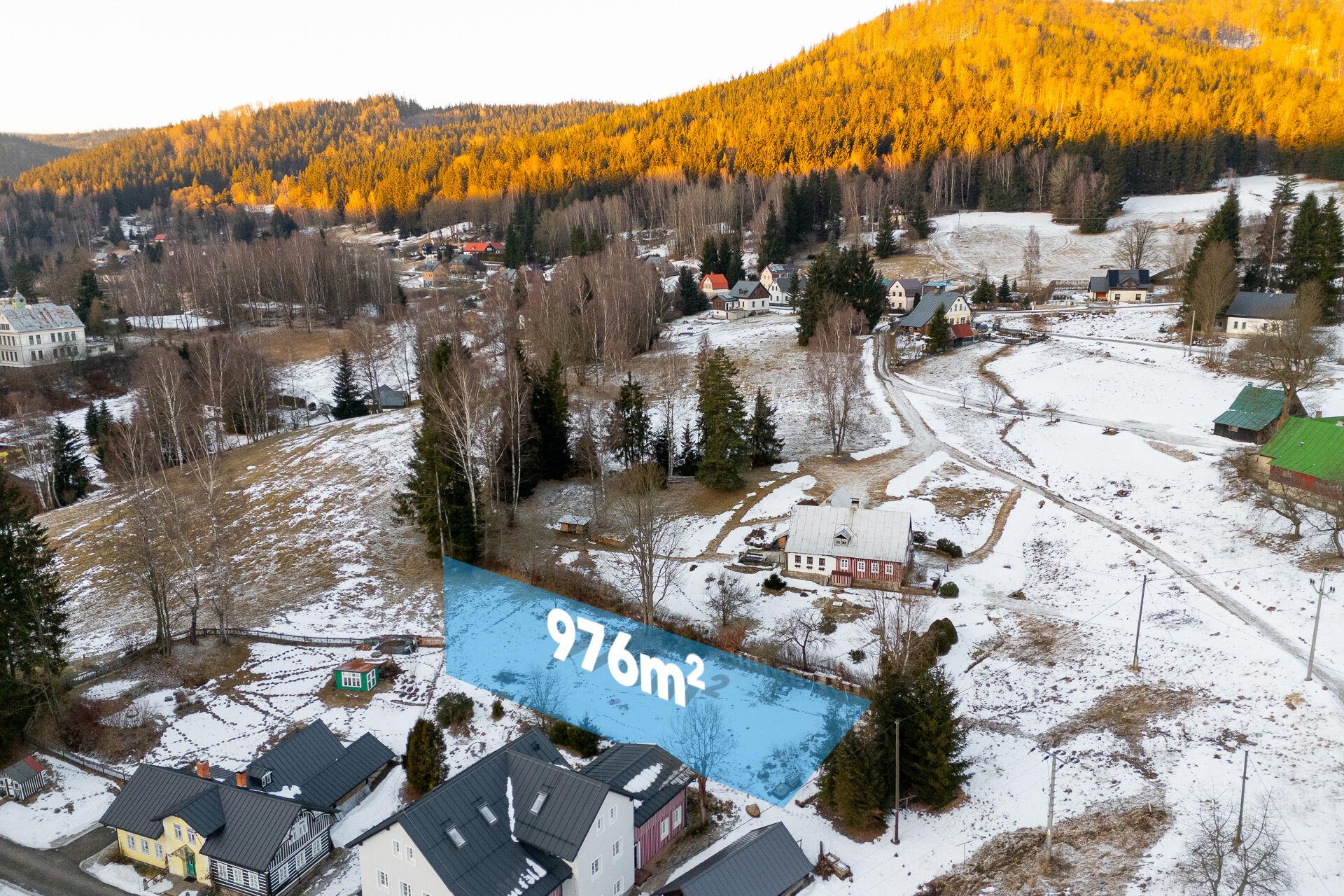 Stavební pozemek 976 m² s projektem roubenky, Antonínov – Jizerské hory